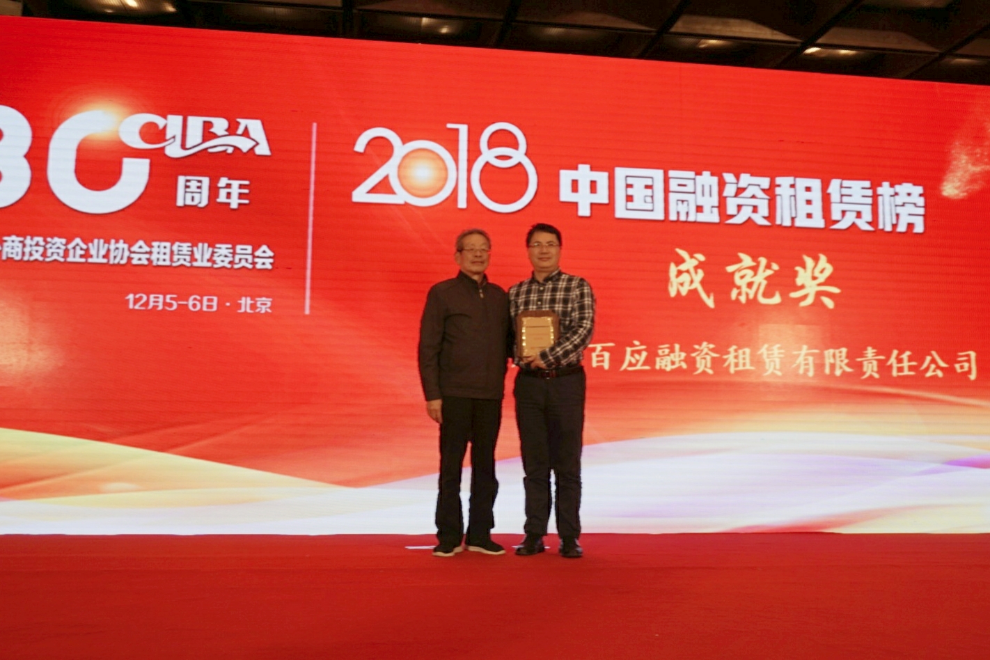 百应租赁荣膺2018年中国融资租赁“成就奖”